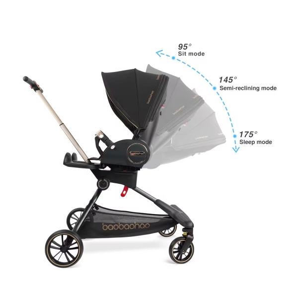 Desain kursi yang ergonomis. Sudut dapat disesuaikan secara bebas dari 95 ° hingga 175 °, dan desain kemiringan mengucapkan selamat tinggal pada setengah tidur, melindungi tulang belakang bayi yang kurang berkembang, yang lebih aman dan lebih nyaman.